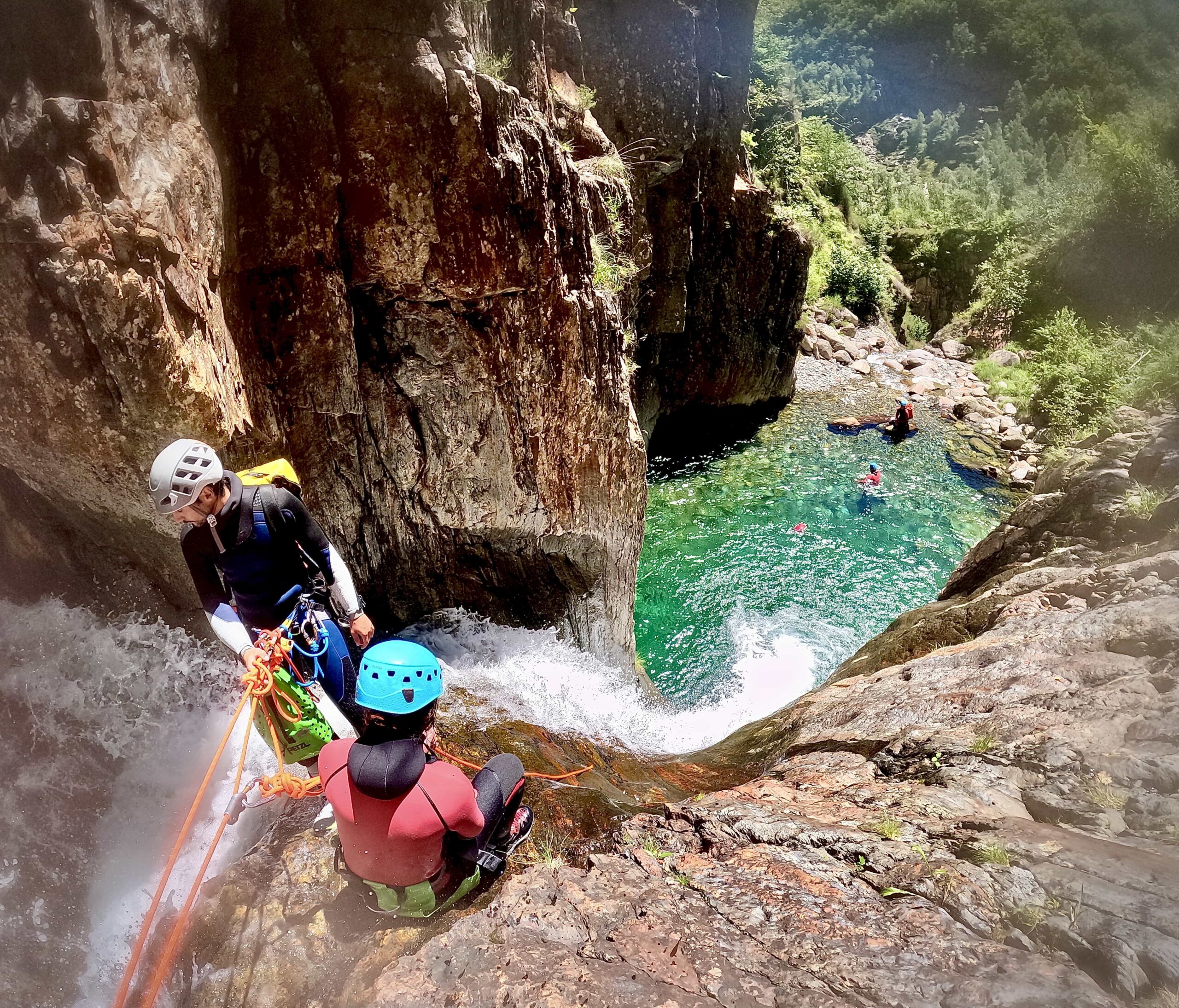Une fois arrivés au départ du canyon, chacun enfile sa combinaison encore tiède de soleil. Le bruit de l’eau remplace les notifications Slack, et les premiers sourires complices annoncent déjà une journée différente : une vraie activité nature pour entreprise, pensée pour reconnecter, fédérer et créer de vrais souvenirs hors du bureau.